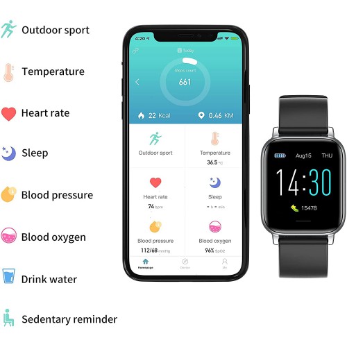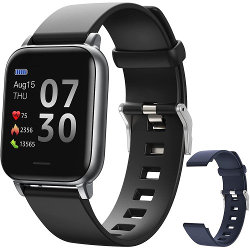 Smart Watch for Men Women, 1.3 inch Full Screen Health Tracker with Heart Rate Monitor, Sleep Monitor IP68 Waterproof Activity Tracker Fitness Watch Black/Blue, Gift